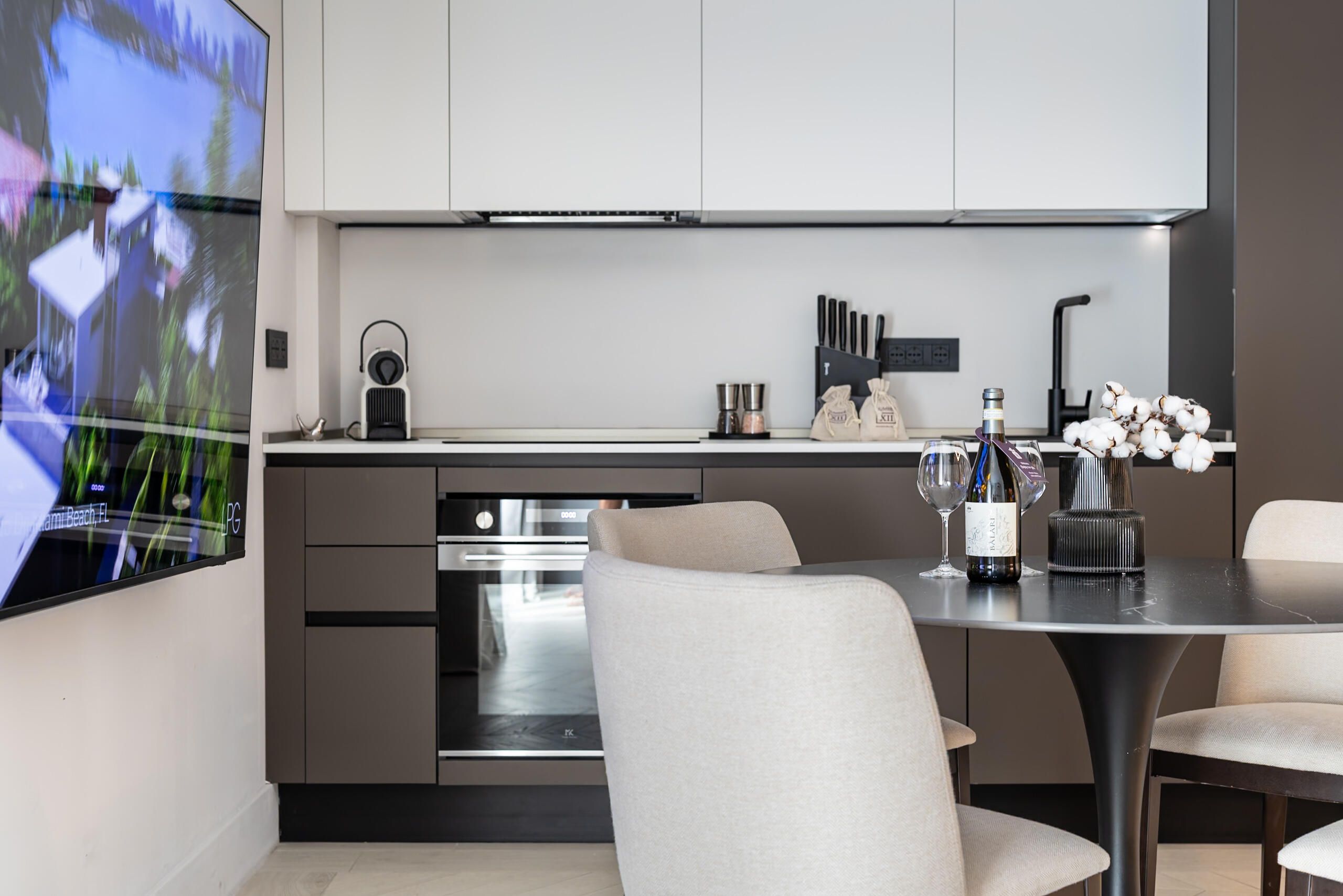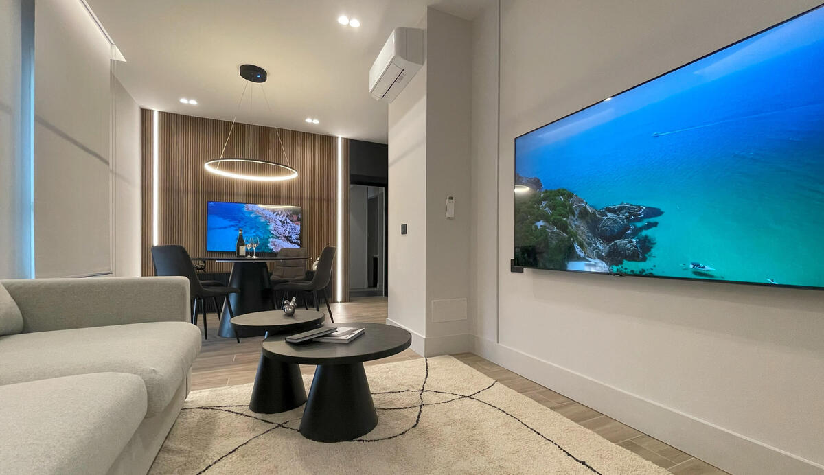 Enjoy the elegance of a custom-designed CREO kitchen for culinary adventures. Relax in the spacious living area, complete with large-screen TVs and ultra-fast Wi-Fi, surrounded by stylish comfort.